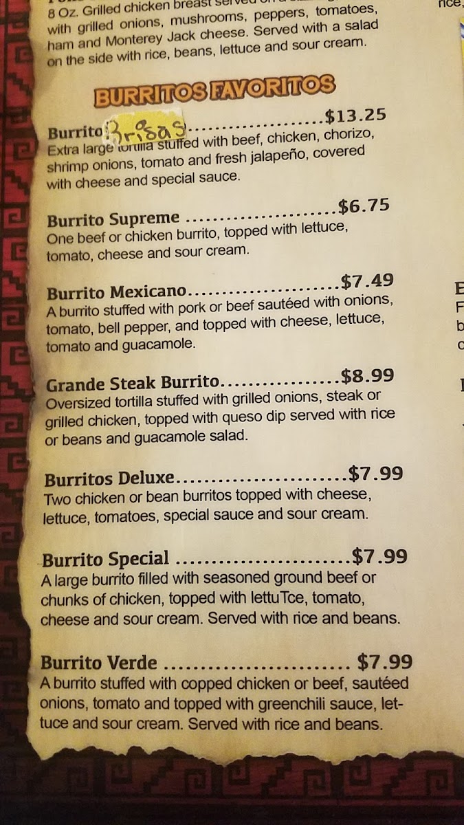 Las Brisas Mexican Restaurant - Jackson Menu